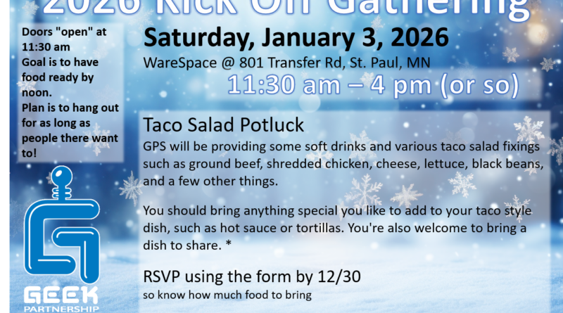 Read MoreSaturday, January 3, 2026WareSpace @ 801 Transfer Rd, St. Paul, MN11:30 am – 4 pm (or so) Doors “open” at